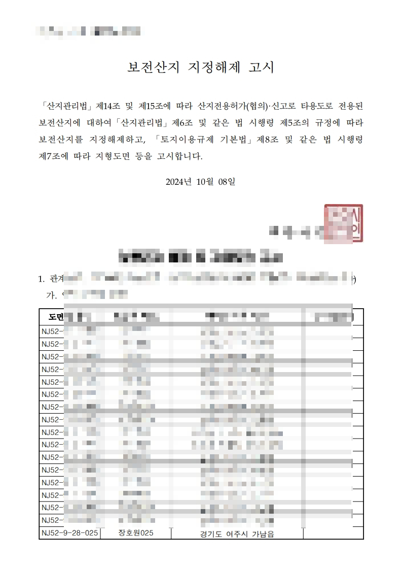 최근에는 지역 수요를 반영한 신속한 의사결정과 지역경제 활성화를 위해, 3만㎡ 미만 보전산지 해제 권한을 산림청장 → 시·도지사로, 심의권한을 중앙산지관리위원회 → 지방산지관리위원회로 위임하는 입법이 국회에 계류 중이며, 산림청 산림정책과는 2026년 상반기 시행을 전망하고 있습니다. 실제로 여러 지자체에서 도시계획·생활SOC와 연계한 지정해제를 검토·추진하는 사례가 증가하고 있어, 지역 산업기반 및 정주여건 개선의 촉매로 작동할 가능성이 커졌습니다.