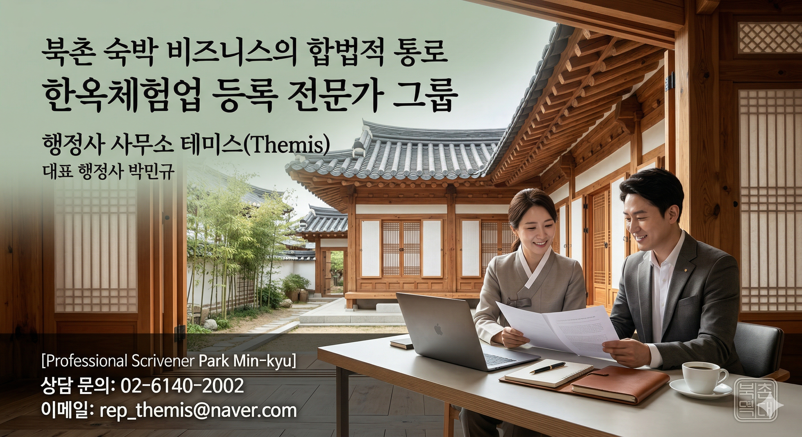 행정사 사무소 테미스는 현장 실사 동행부터 입지 분석, 사업계획서 작성, 그리고 운영 단계의 가이드라인 수립까지 원스톱으로 지원합니다. 의뢰인의 한옥이 대한민국 어디에 있더라도, 가장 안정적이고 품격 있는 스테이 비즈니스의 길을 열어드리는 든든한 법률 파트너가 되겠습니다.